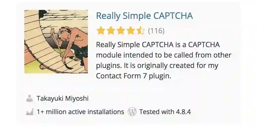 先给大家介绍一下今天我们要黑的验证码插件。在Wordpress官网的插件注册页面(https://wordpress.org/plugins/)搜索“captcha”,返回的第一条结果“Really Simple CAPTCHA”就是今天我们要开刀的插件了。