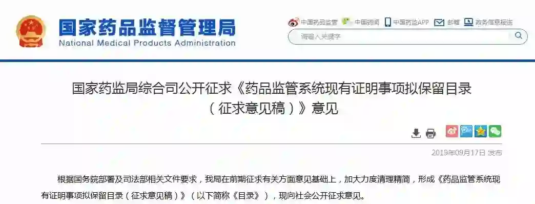 但国家药监局在《意见》中表示,证明事项清理范围限定在由药品监管部门规章、规范性文件明确规定的,行政相对人在办理行政许可、行政确认和行政给付等过程中需要提供的证明事项。