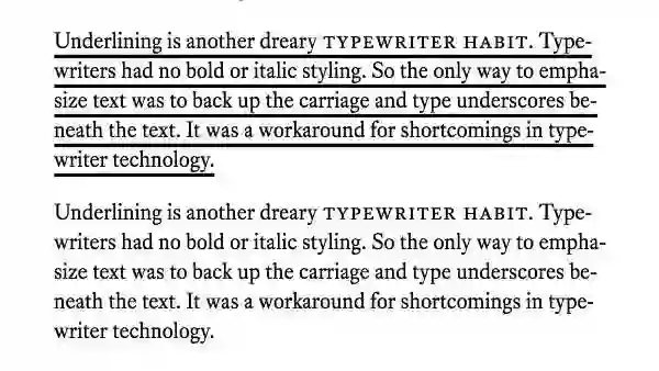 在早期打字机年代,是缺乏样式,比如字体大小、样式、颜色、缩进和符号都没有,文字下划线的样式,被印刷设计师用作强调文本的重点。