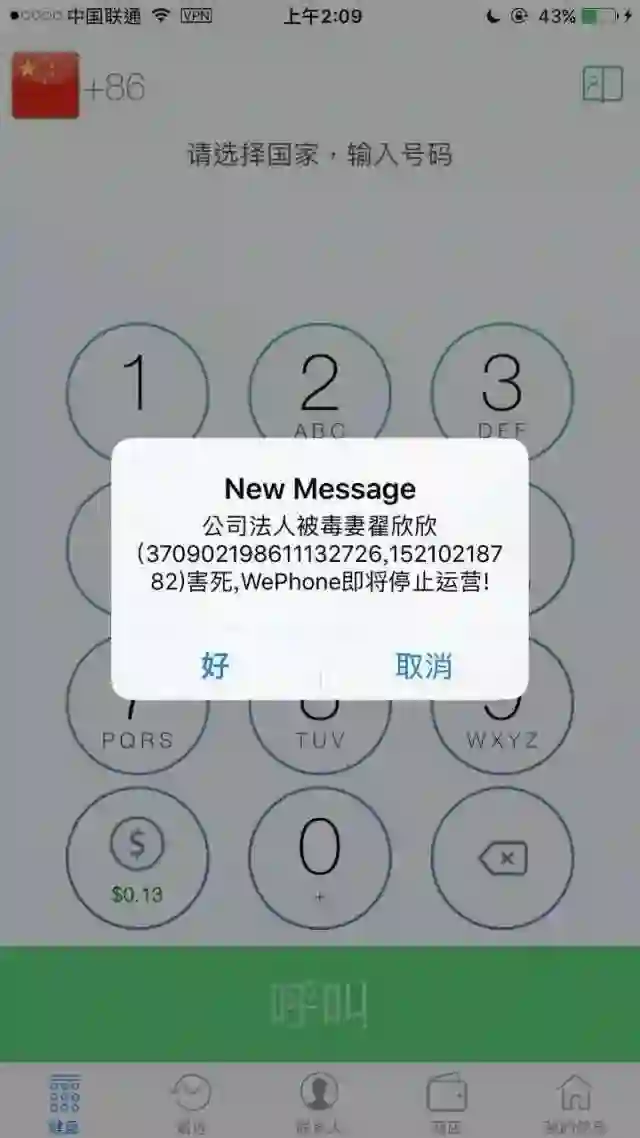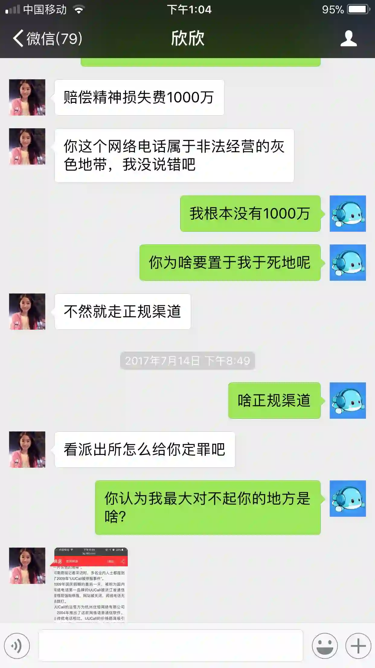 2. WePhone有网络电话功能是灰色运营 ,各种暗示能利用她亲戚舅舅刘克俭(据她说是不小的公安局的官)的关系让我产品下架罚款、倾家荡产