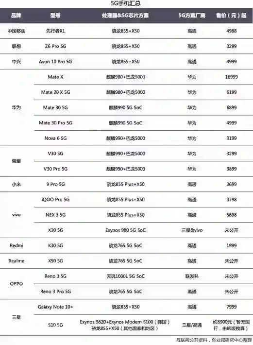 5G标准制定后,各大厂商先后发布了自家的5G通信方案。5G芯片目前有两种形式:5G SoC和外挂5G基带。5G SoC即将5G Modem(调制解调器)集成于手机处理器平台中,外挂5G基带则将5G Modem置于处理器平台外部,而非集成。