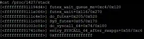 第三个字段就是task的状态。然后再查看/proc/${pid}/stack 文件就可以知道task 等在哪里。如: