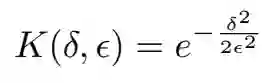 由于标签值只有0和1,因此比较生硬,无法更细致的刻画点和模型的匹配程度,因此往往引入核函数(如高斯函数),此时: