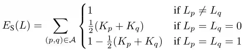 上式第一行表示:惩罚标签不一致的邻近点;第二行表示:如果两个点都为野点,则其与模型的接近程度越大,给予的惩罚越大;第三行表示:如果两个点都为内点,则其与模型越匹配,惩罚越小。