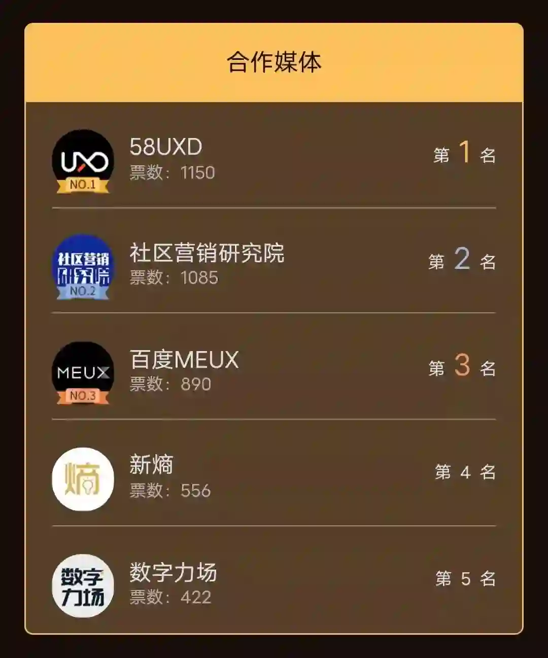 还有合作媒体类目,不到最后一天,谁都无法确定第一名是谁;