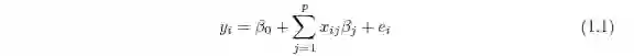 其中,β0 和 β =(β1, β2, . . . , βp)是未知参数,ei 为误差项。这些参数可用最小二 乘法来估计,即最小化最小二乘目标函数: