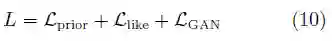 该类模型同时训练GAN与VAE模型,其目标函数由三部分组成:
