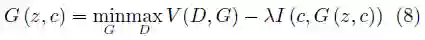 λ是该约束项的超参数。互信息量约束使得输入的隐变量c对生成数据的解释性越来越强。
