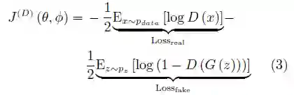 在GAN的原始论文中,Goodfellow将判别器的损失函数定义为一个标准二分类问题的交叉熵。真实样本对应的标签为1,生成样本对应的标签则为的形式为