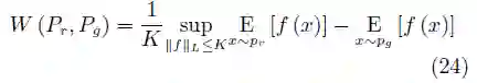 其次,原始GAN只能用于生成连续数据,无法生成离散数据(如自然语言)。从直观上理解,由于生成器每次更新后的输出是之前的输出加判别器回传的梯度,其输出必须是连续可微的。更进一步地,有研究者指出,是由于原始GAN论文中使用了Jensen-Shannon(JS)散度JSD(Pr||Pg)作为衡量生成样本的度量标准[40],即使使用词的分布或embedding等连续的表示方法也无法实现很好的离散数据生成。