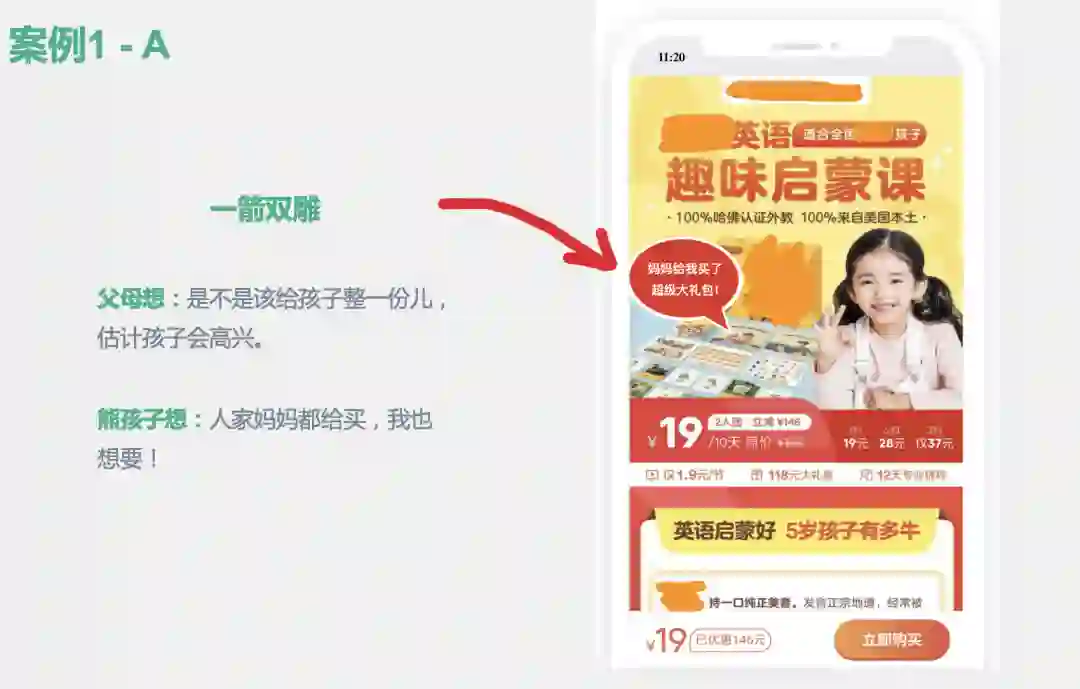 我们接触过的一个在线少儿英语品牌,平均客单价在1000-1500块,在信息流里做广告。那么,请问,点击他们这个广告的人,都是哪些人呢?