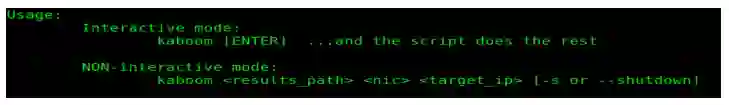 kaboom <results_path> <nic> <target_ip> [-s or --shutdown]