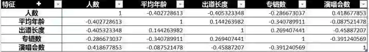 出道长度和和演唱会次数为负相关。