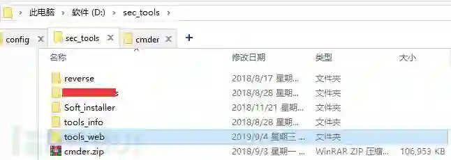 先截图看看我的工具的大分类,有web工具,逆向,信息收集工具,先这几类吧!这几类下面的子目录放各种工具,这样方便迁移,因为安全工具多体积大,所以不放C盘。