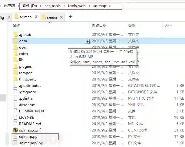 https://github.com/sqlmapproject/sqlmap 下载源代码放到咱们的工具目录,如下: