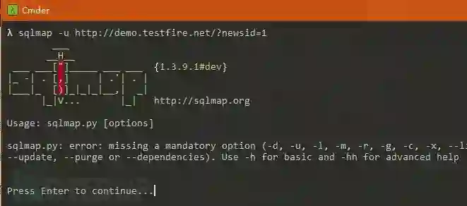 说明:如果你在本机安装了nmap、msf之类的,在cmd可以直接使用的话,在cmder中也可以直接使用,下面以sqlmap为例