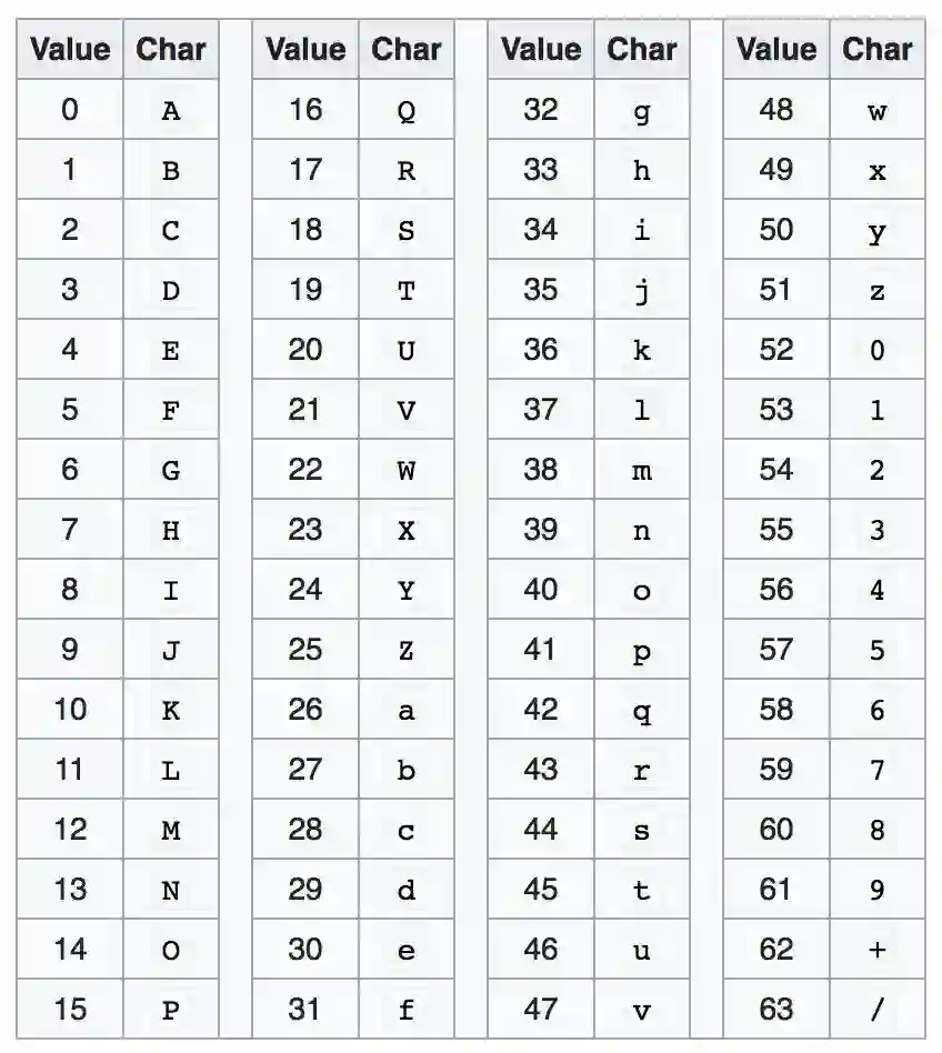 最常见的编码算法就是base64了,多用于编码二进制的数据,将不可见的字符编码后转换成64个常见字符组成的文本,便于打印、展示、传输、存储。如邮件eml格式中,将附件文件通过base64编码。