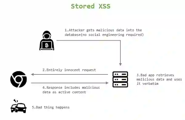 上述方式攻击脚本直接经服务器转手后返回浏览器触发执行,存储型与之的区别在于能够将攻击脚本入库存储,在后面进行查询时,再将攻击脚本渲染进网页,返回给浏览器触发执行。常见的套路举例如下: