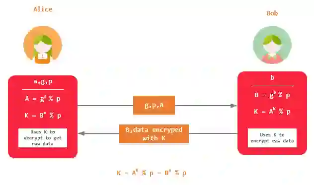 上面这个例子并不只是举例,在早期版本的HTTPS中,就是通过这种方式来进行密钥交换。而后来的版本中,另外一种叫DH及其变种的密钥交换算法用的越来越多。