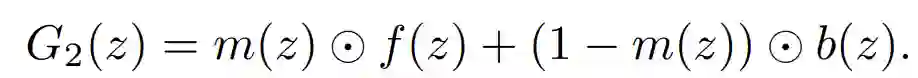 为了在generations中强制执行背景模型,b(z)生成一个随时间复制的空间图像,而f(z)生成一个被m(z)掩盖的空间-时间立方体。通过将前景模型与背景模型相加,可以得到最终的生成,即元素相乘,我们复制单子维度以匹配其相应的张量。