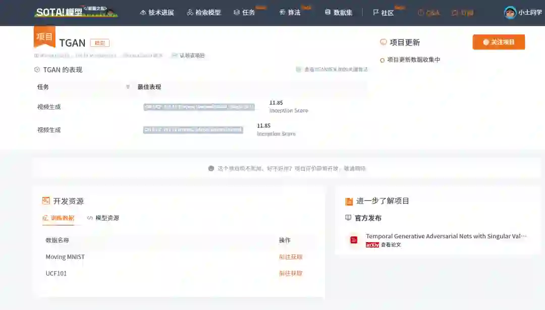 | TGAN | https://sota.jiqizhixin.com/project/tgan 收录实现数量:1 |