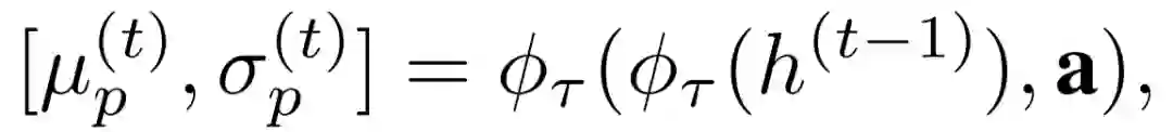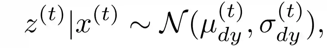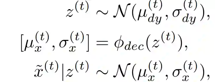 在时间步长t的潜在变异表征是以LSTM的状态变量h(t-1)为条件的。这种额外的依赖性利用了视频在时间上高度一致的事实,防止两个连续帧之间的内容和运动变化过快。由于先验分布代表了模型在时间点t的预测和信念,考虑到以前的所有信息,它不应该是一个固定的高斯(如静态VAE的情况),而是遵循分布