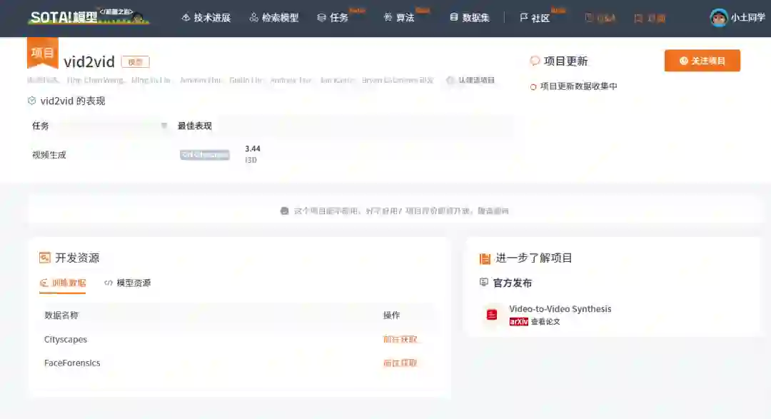 当前 SOTA!平台收录 vid2vid共1个模型实现资源。