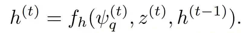在每个时间步长,帧输入x(t)被编码器函数φenc映射到分层潜在空间(图9b),解码器从中采样