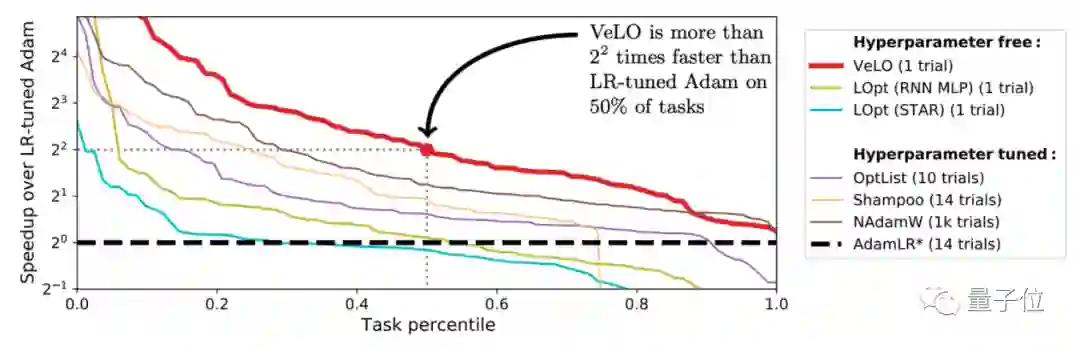 结果表明,VeLO在83个任务上的加速效果超过了一系列当前已有的优化器。