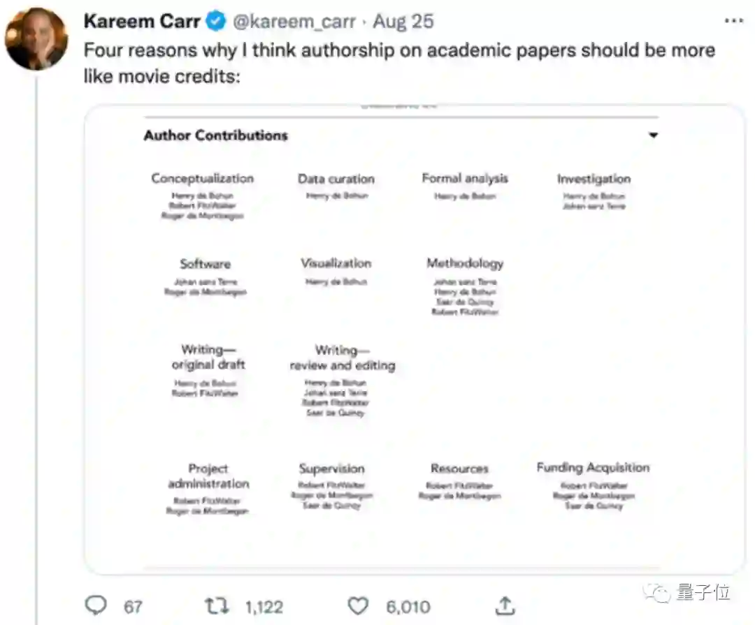 更多论文的作者们也应该像演职员表一样,公开自己在论文中的工作内容。