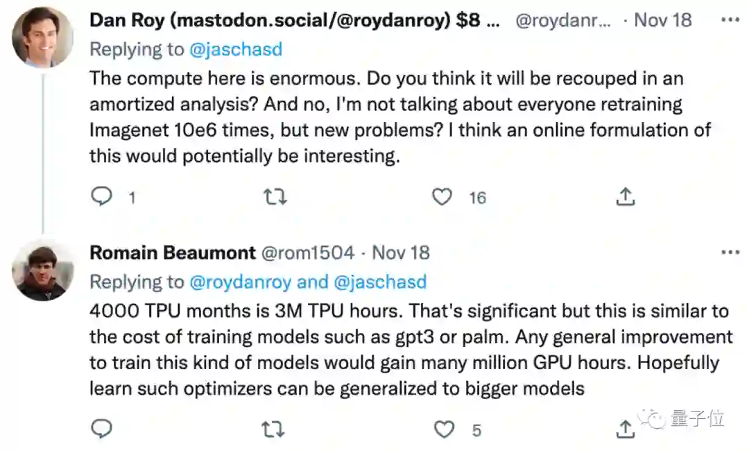 巴特,也有网友认为耗费4000个TPU月来训练VeLO,计算量成本过大: