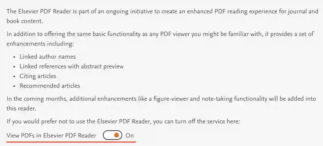 如果不想被爱思唯尔获取个人信息,可以在网页中关掉默认的PDF阅读器。
