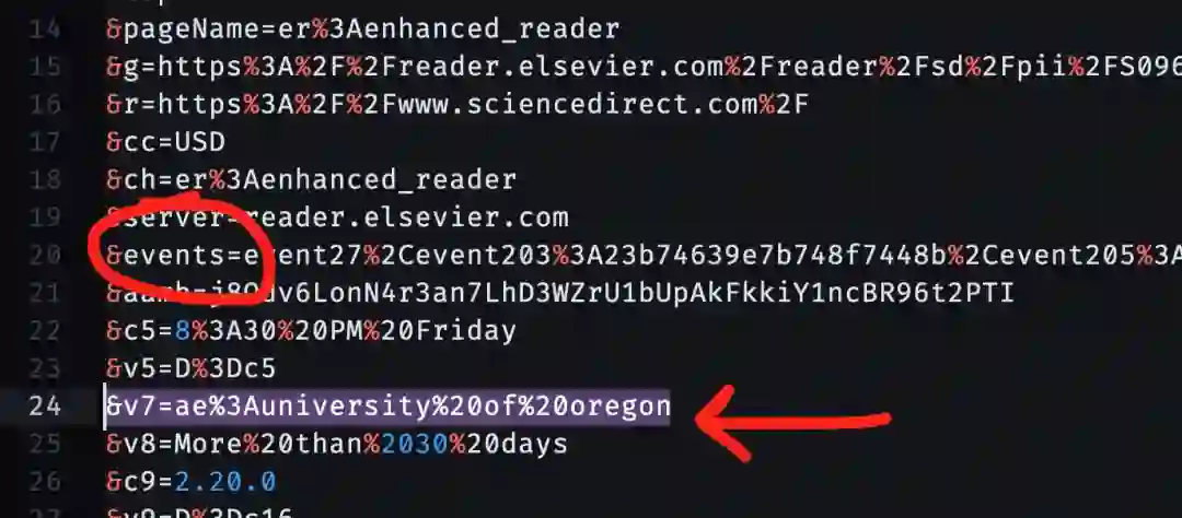 根据Jonny Saunders的分析,爱思唯尔不仅读取了你的行为,还记录你所在学校等信息,并在空闲时将一大串base64码发送到服务器。