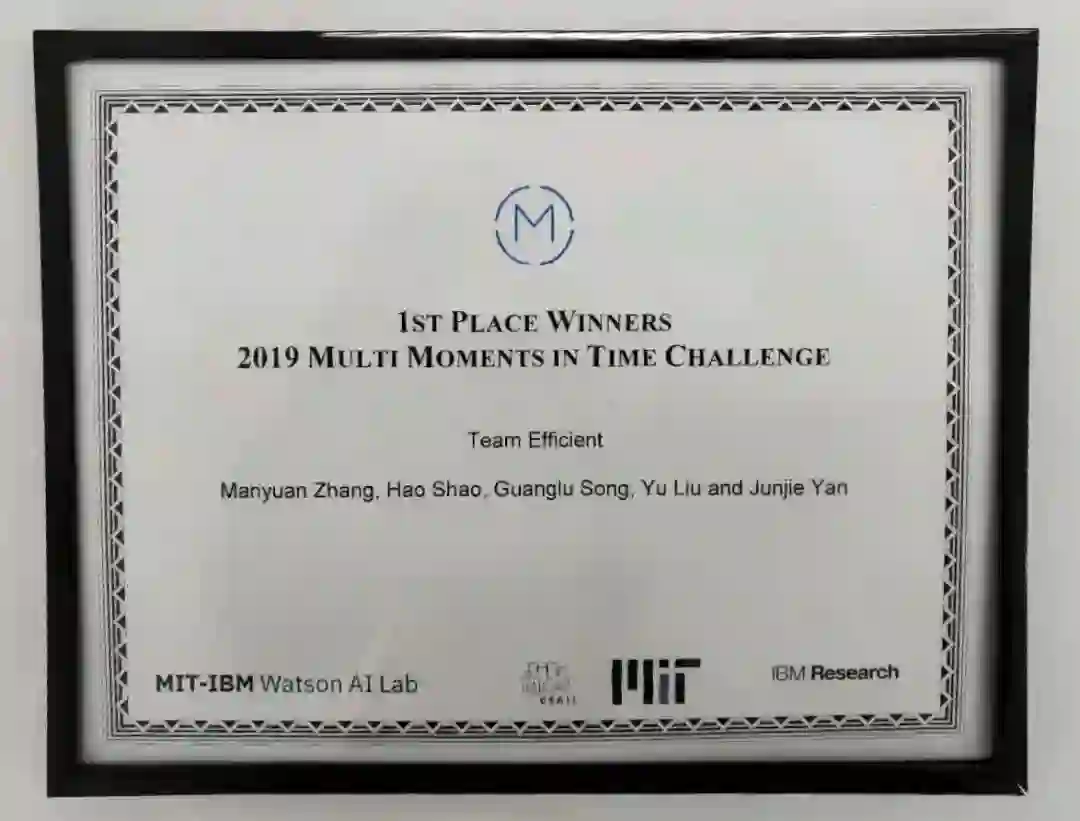 同时该方法作为主力方法,在 2019 年的 ICCV Multi Moments In Time challenge 中取得了冠军。