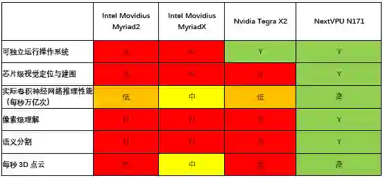 NextVPU N71对比Intel Movidius Myriad2/MyriadX/Nvidia Tegra X2