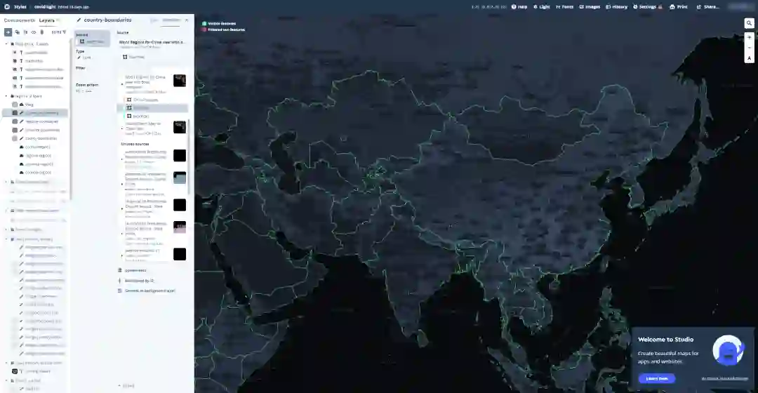 图八 Mapbox Studio宏观前端渲染