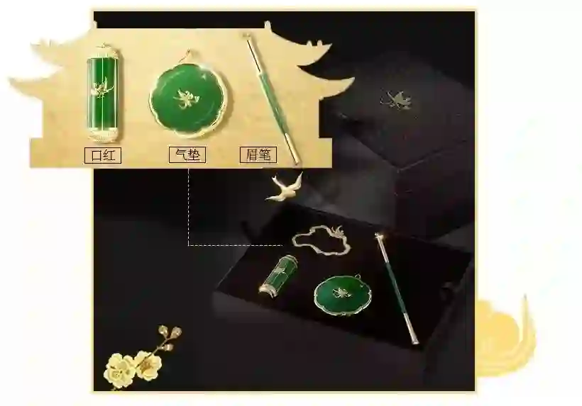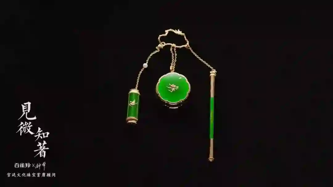 平价国货百雀羚和故宫的联名款,多了一丝名媛风范。不仅用上了金镶玉的技艺,还完美复刻了古代宫廷贵族女子随身携带的「金什件」。