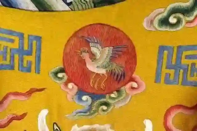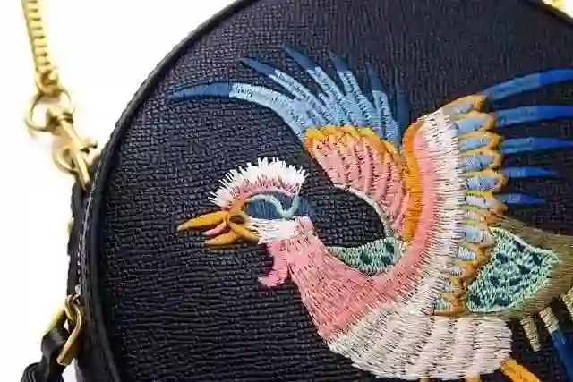 但看起来跟故宫没什么关系呀?仔细一查才知道,包上的鸟来自于故宫藏品《明黄色缎绣五彩祥云金龙十二章纹夹龙袍》上的日章纹样,名叫「三足金乌」,是守护太阳的神兽,专供龙袍绣制。