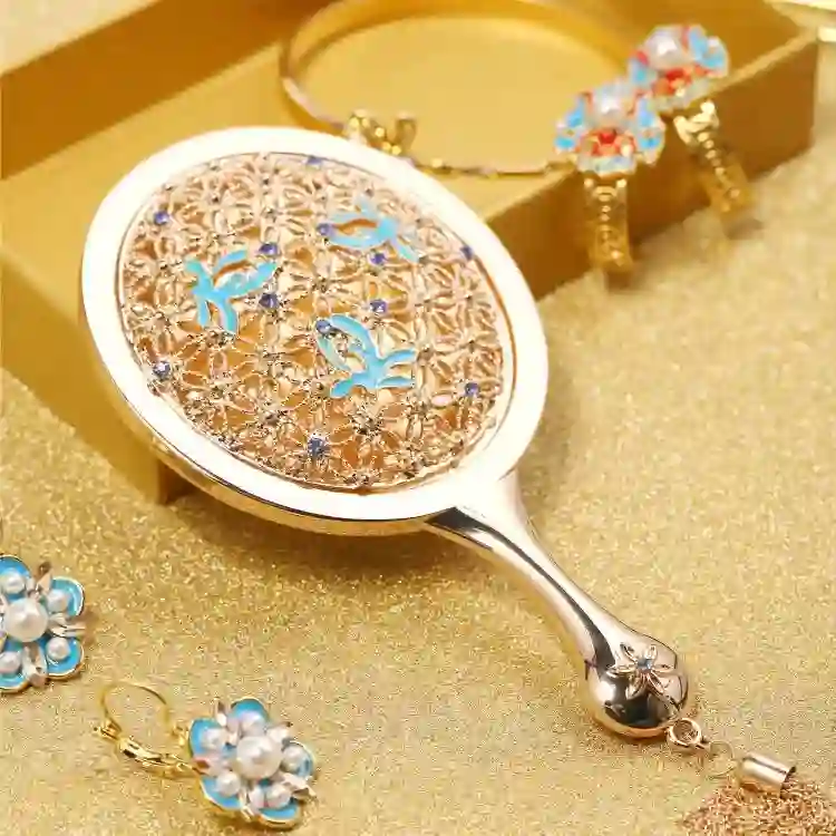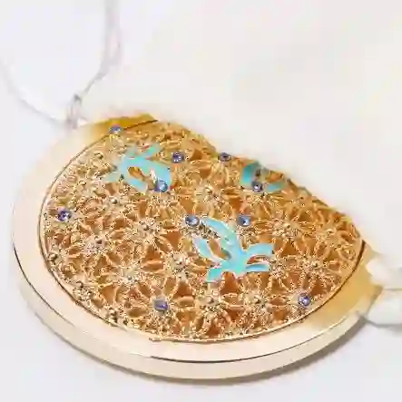 创意来源于故宫博物院的珍藏文物「金蕾丝花囊」,样子玲珑精巧,小小的一只用作补妆镜,哪个女孩子不喜欢呢?