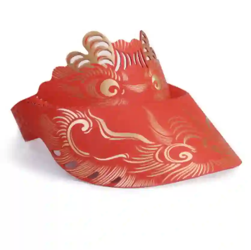 做人,就要做龙头。设计师从剪纸中得到了灵感,将卡纸做成龙头形状并折起,便成了这顶遮阳帽。别看帽子是可折叠的,采用的材料却防水又坚韧。