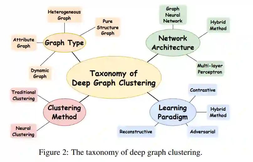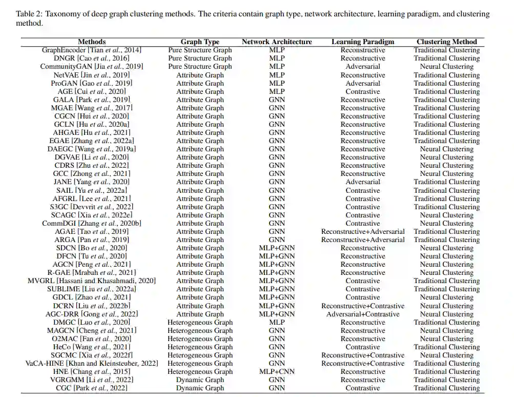 在图类型、网络架构、学习范式和聚类方法的基础上,对最近的深度图聚类方法进行了分类。