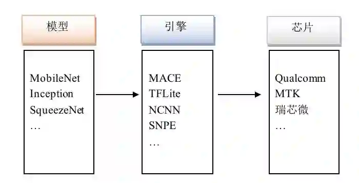 与 AI 在服务器部署不同,端上 AI 的场景更具碎片化特征。针对不同的应用场景,需要考虑芯片功能、性能、成本等因素,做出最优选择。AI 热潮促进了一大批 AI 芯片新型企业诞生,巨头也纷纷加入芯片行业。这些芯片中的计算单元在设计及性能指标上都有较大差异。其中,包括传统计算单元,如 CPU、GPU、DSP 等,也包括专用计算单元,如专为神经网络计算设计的硬件加速器。不同芯片厂商设计的芯片在体系结构上均有区别,即使同一家厂商同一类型的计算单元由于型号的演进,功能和性能也存在差异性。虽然有些芯片厂商会公布一些性能数字,但这些数字往往是底层架构级别的参考,如 flops,并不能成为终端用户关心的直接指标。开发者关心的是整个神经网络端到端的支持完备性和性能指标。
