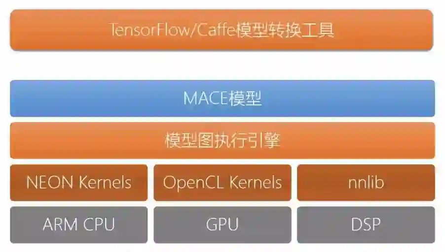 设计之初,就确立了四个目标:高性能,通用,易用和便携。性能,是框架最关注的指标,目前 MACE 在 CPU 和 GPU 上都已经达到了业界领先水平,同时还支持高通的 DSP,将来还会加入对高通 NPU 的支持。通用性方面,除了计算设备外,MACE 目前可以支持深度学习训练框架有 Tensorflow 和 Caffe,同时 MACE 支持 ONNX 开放模型交换协议。易用性方面,MACE 不仅提供完善的文档,还有完善的开发闭环,支持多个层次的单元测试和基准测试,极度开发友好。而便携性是指框架的体积尽可能小,困于设备端存储资源有限,我们压缩程序库大小,定制化策略,移除不必要的代码。值得一提的是,MACE 还在模型加密、内存占用、系统响应等方面做了针对性的优化。