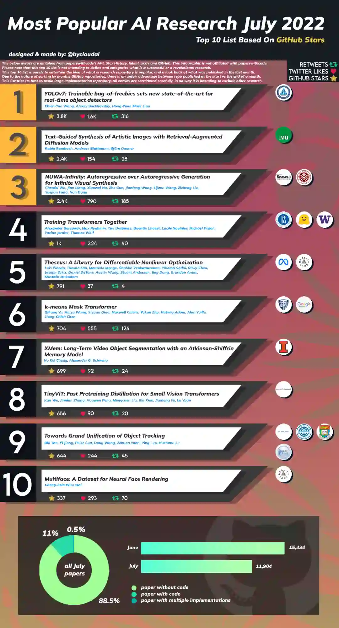 https://www.reddit.com/r/MachineLearning/comments/wi05tg/d_most_popular_ai_research_july_2022_pt_2_ranked/