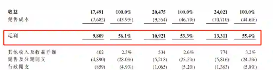 2017-2019年农夫山泉毛利率情况(来自招股书)