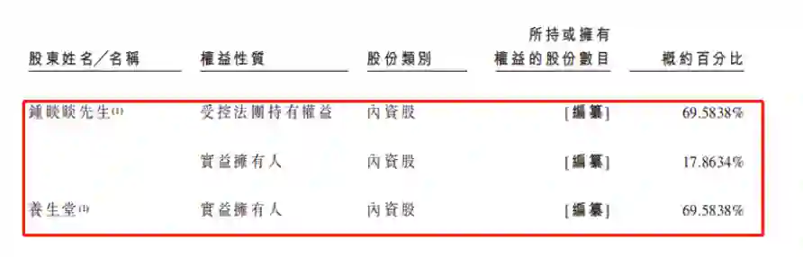 农夫山泉股权情况(来自招股书)