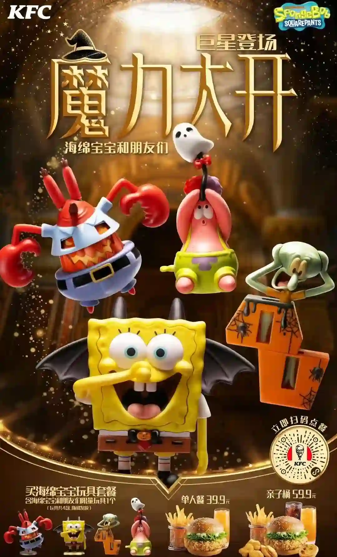 海绵宝宝玩具套餐不仅可爱,还有设计小巧思,比如海绵宝宝的脸打开来写着“trick or treat”,蟹老板身体拉开是南瓜鬼脸。对小朋友来说稍显幼稚,对大朋友来说刚刚好。