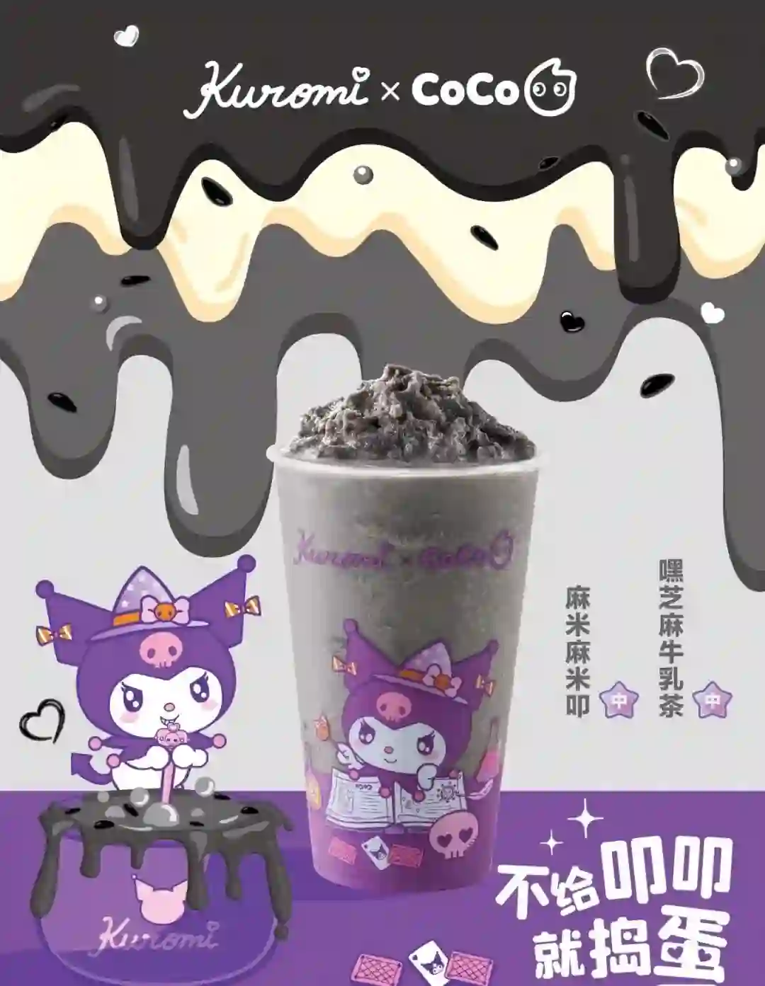 coco的库洛米联名,“麻米麻米叩”黑芝麻牛乳沙冰,拯救秃头女孩,肥宅快乐与养生兼备。谢谢coco记挂我的发际线。