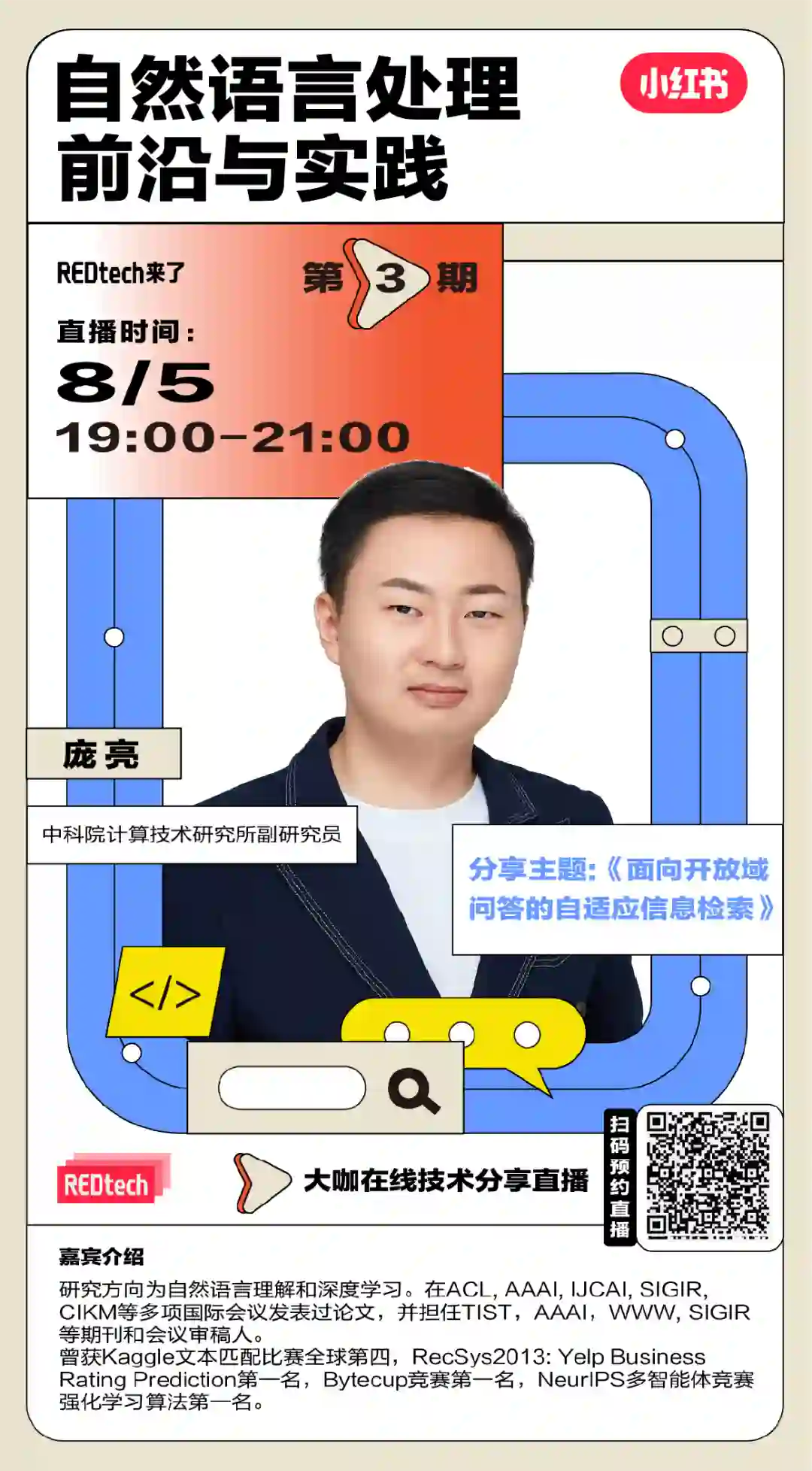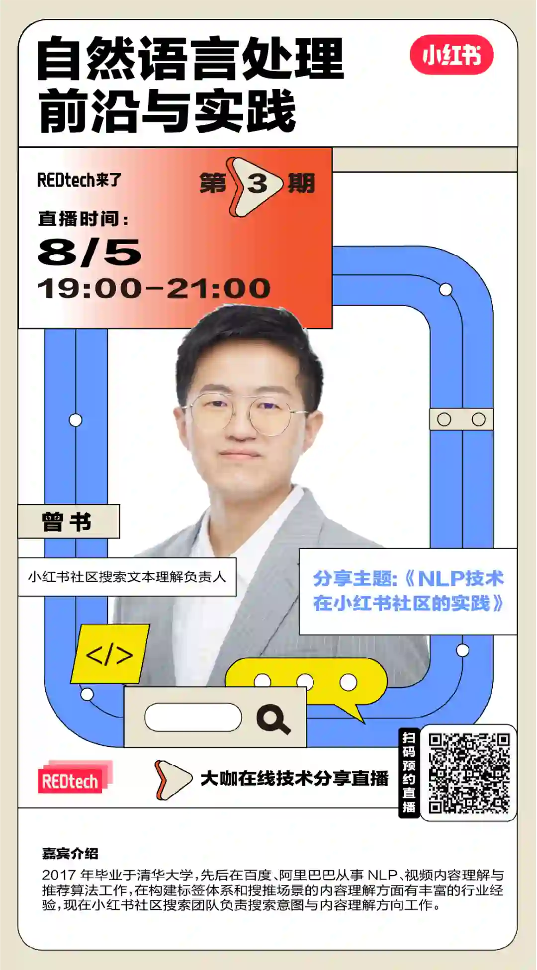 想要得到这些问题的解答,你一定不能错过小红书技术团队出品的《REDtech 来了》系列第三期技术直播。8月5日19:00,小红书将邀请业内顶尖专家和大家一同探讨“自然语言处理的前沿与实践”。
