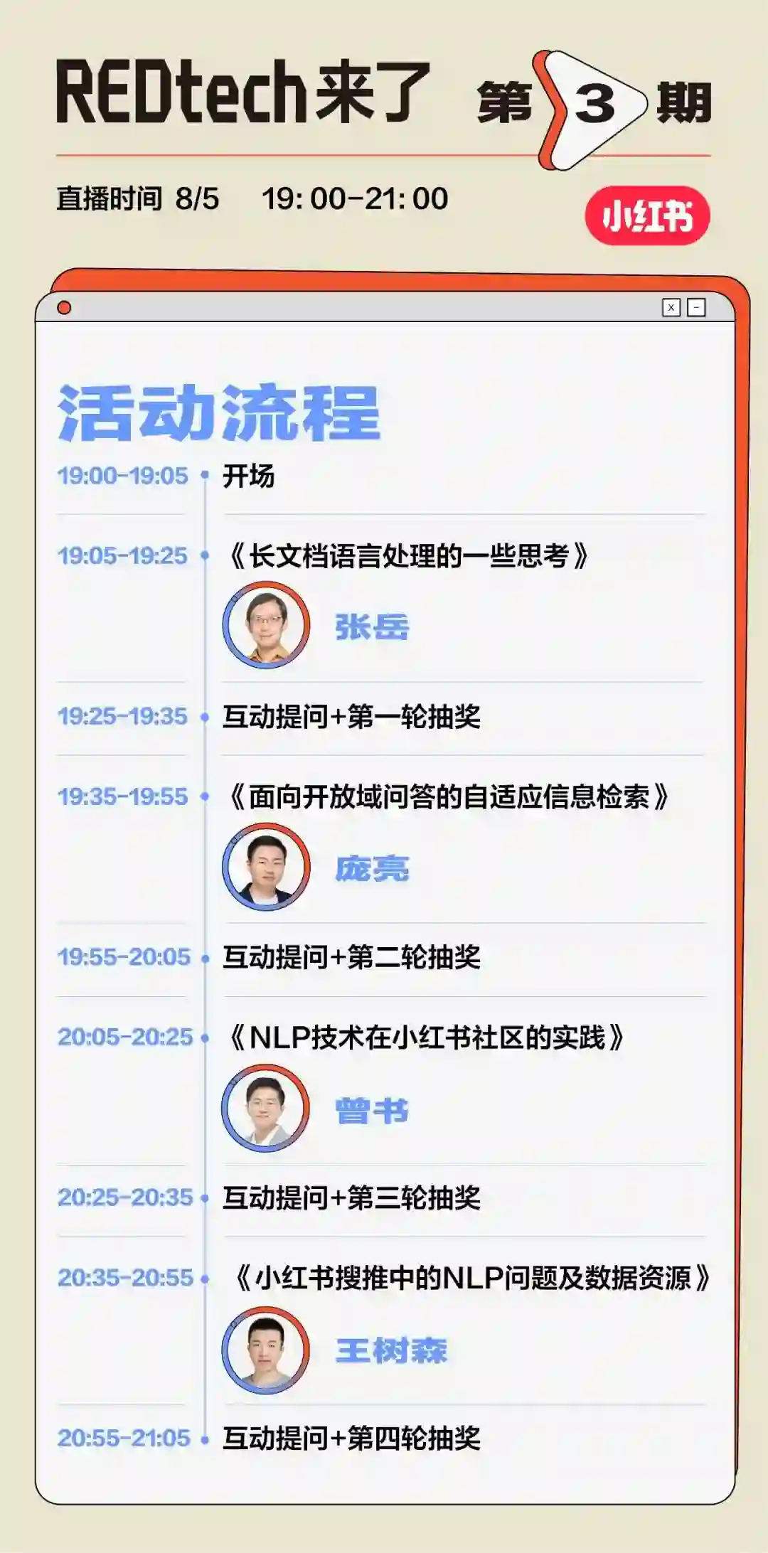 直播平台:关注【小红书技术 REDtech 】视频号,预约直播,不见不散。(直播也将在抖音与B站同步进行,搜索“小红书技术 REDtech ”)